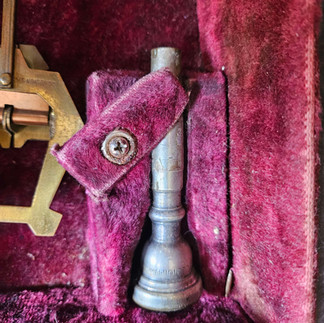 Sears Roebuck sold musical instruments manufactured by a variety of both US and European companies. This looks to be a Monopole model which is pretty amazing as these were top of the line professional trumpets. In the case is a Couesnon stamped mouthpiece and lyre.